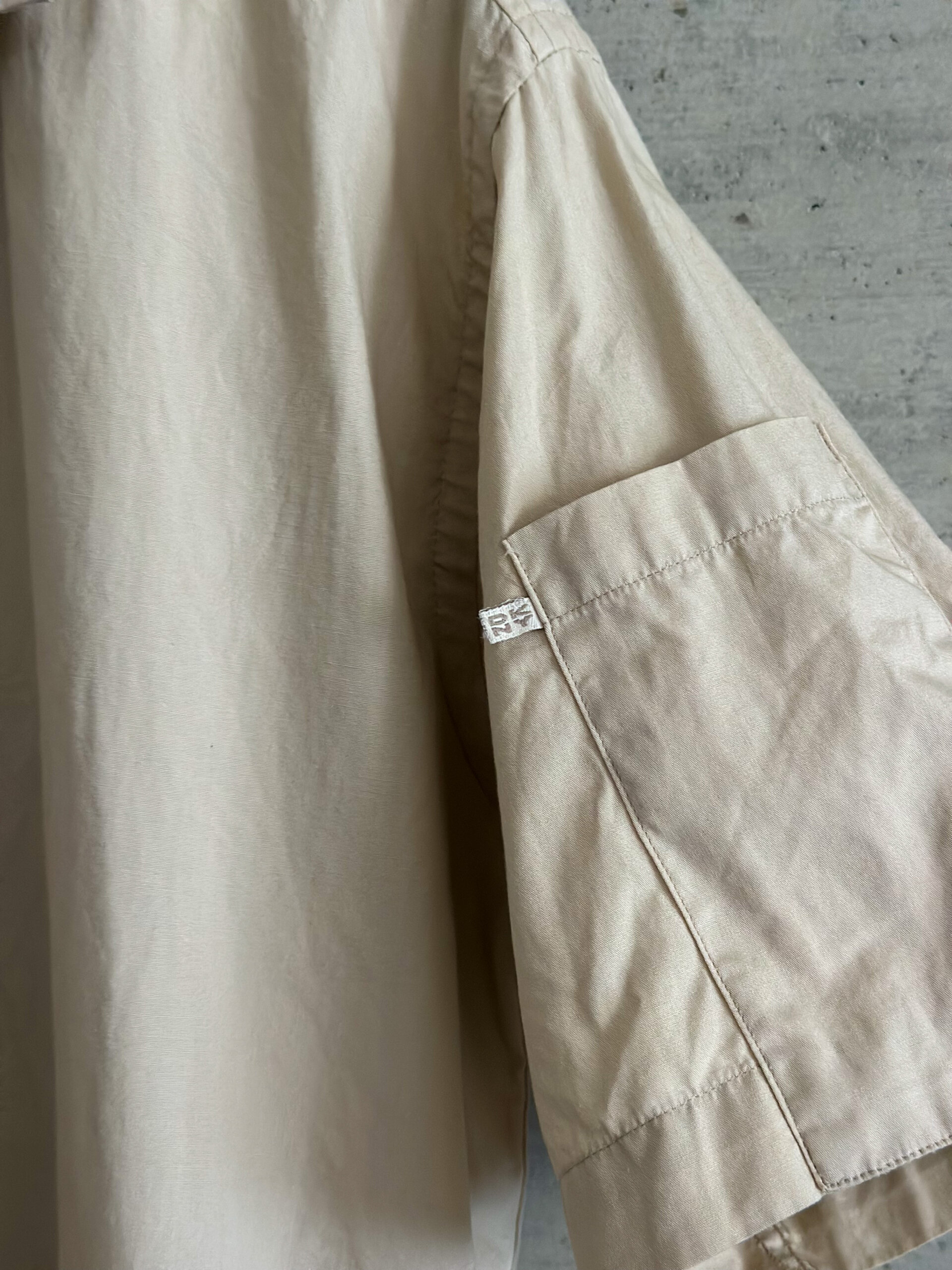 ベージュの色味で爽やかに一枚で着ても様になる一枚。
