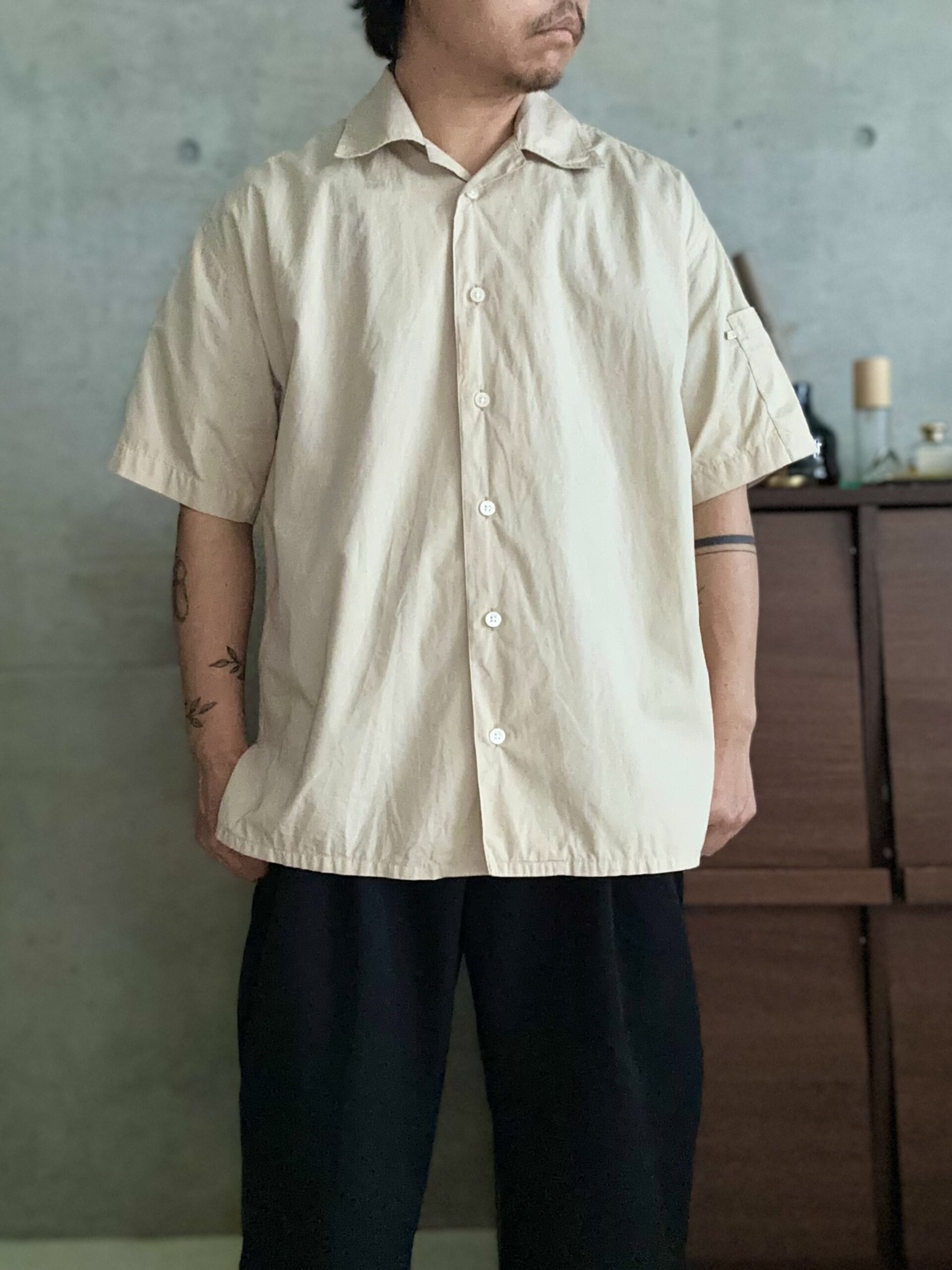 上品なハリ感のあるDKNYオープンカラーシャツ。