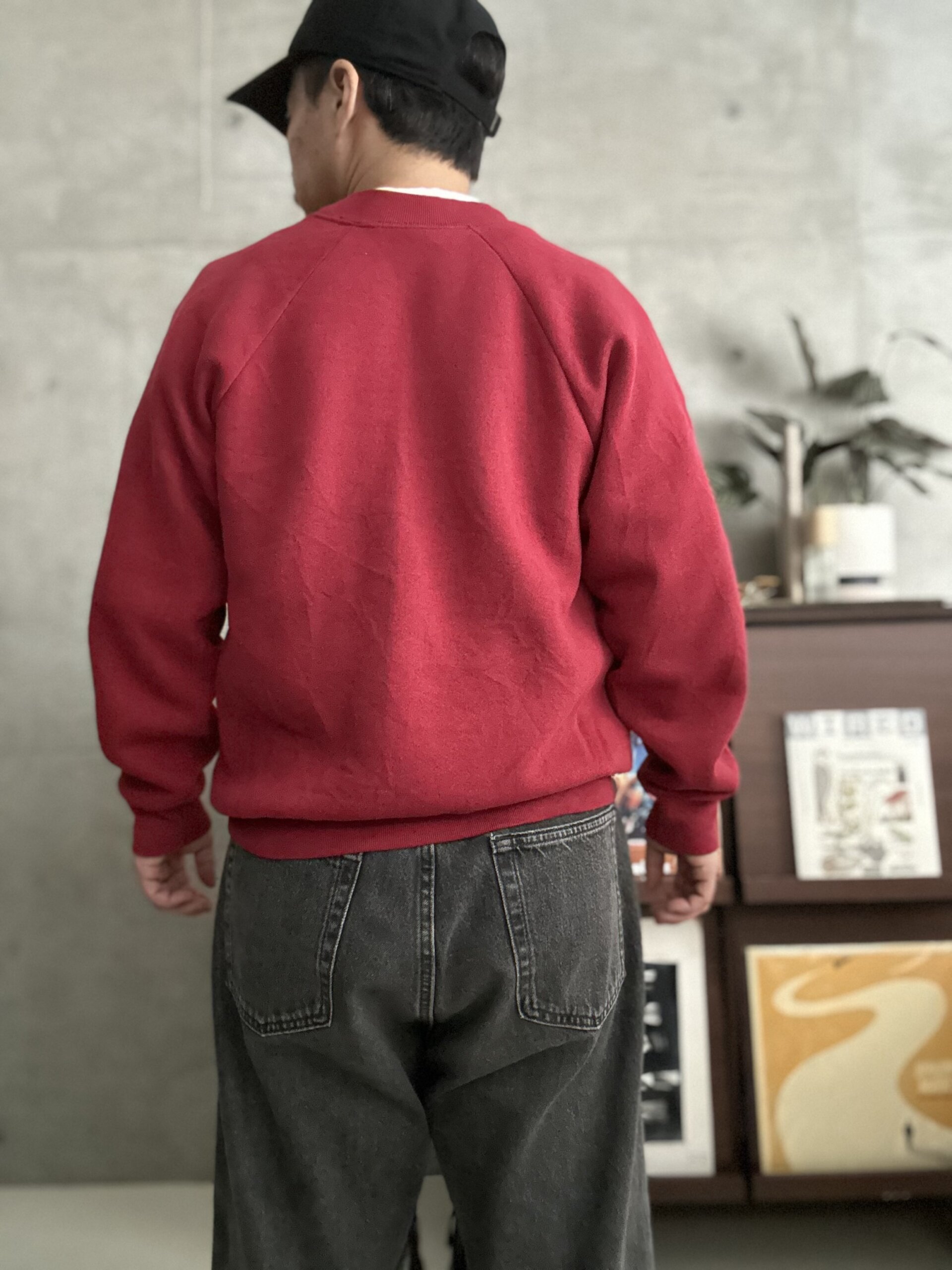赤の色味がパッと目をひくFruit of the loomのスウェット。