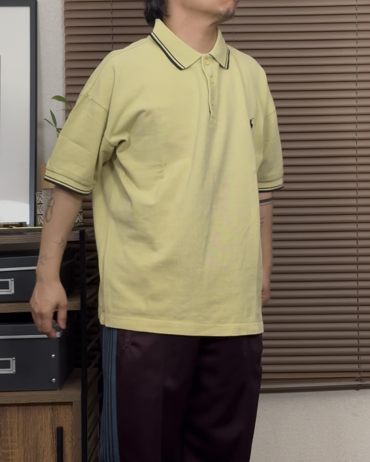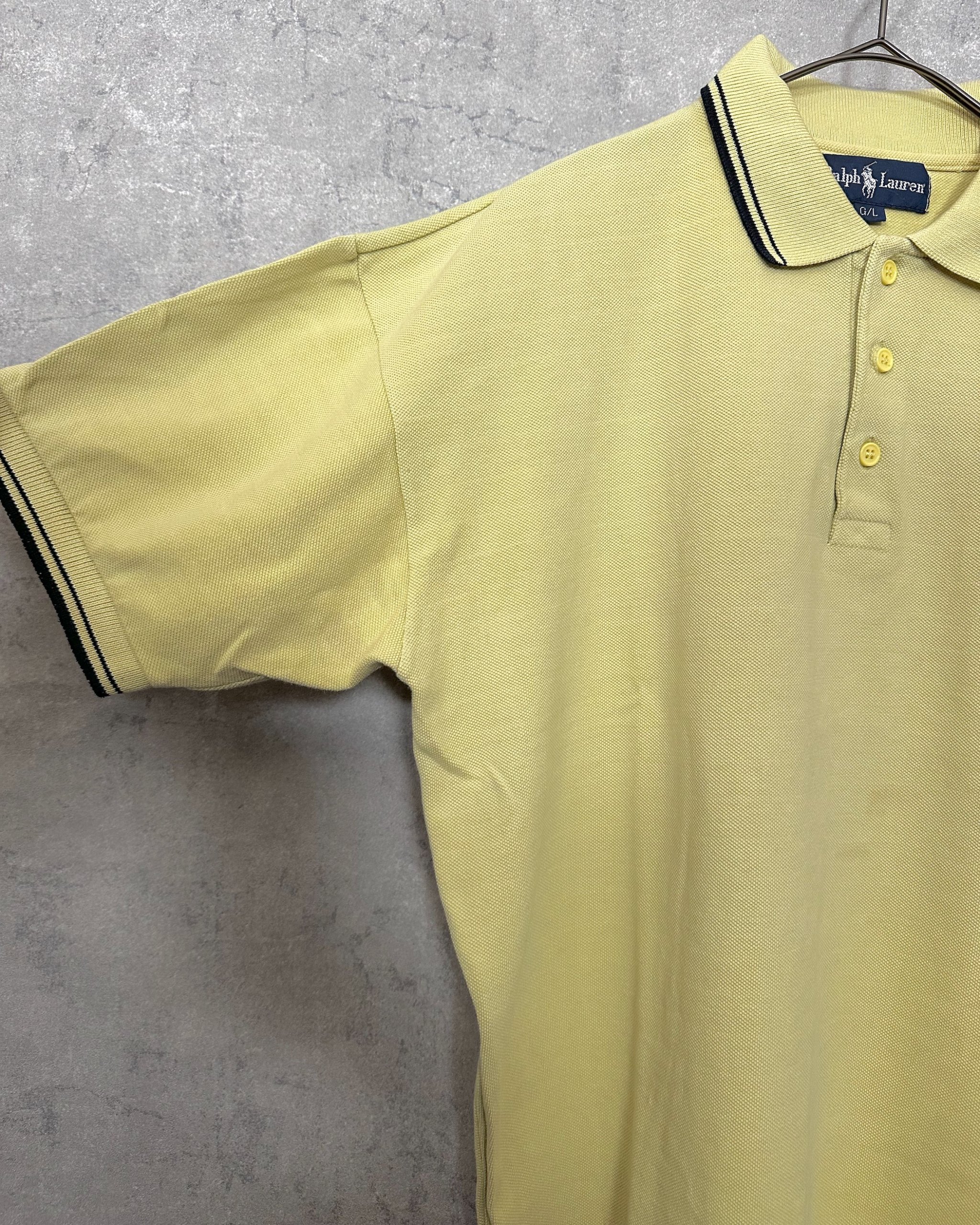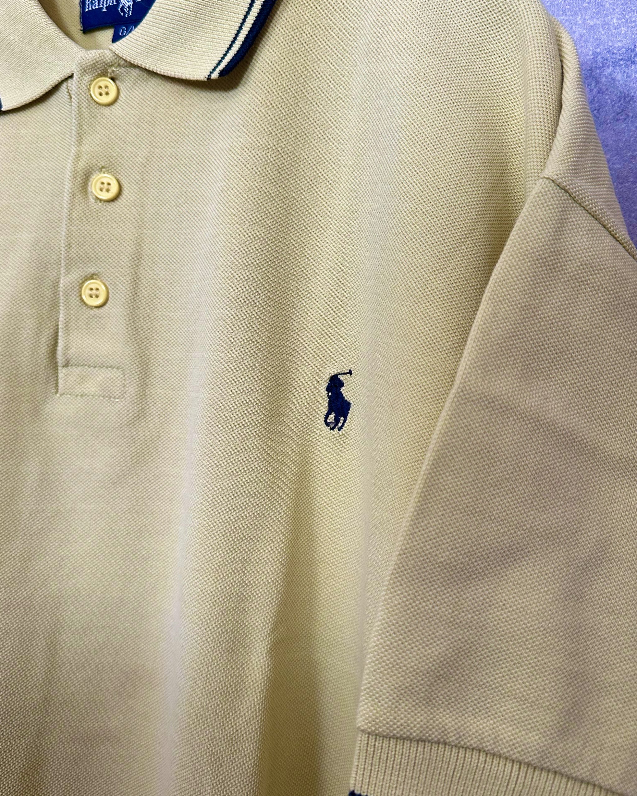 落ち着いたイエローの色味が渋いPoloラルフローレンポロシャツ。