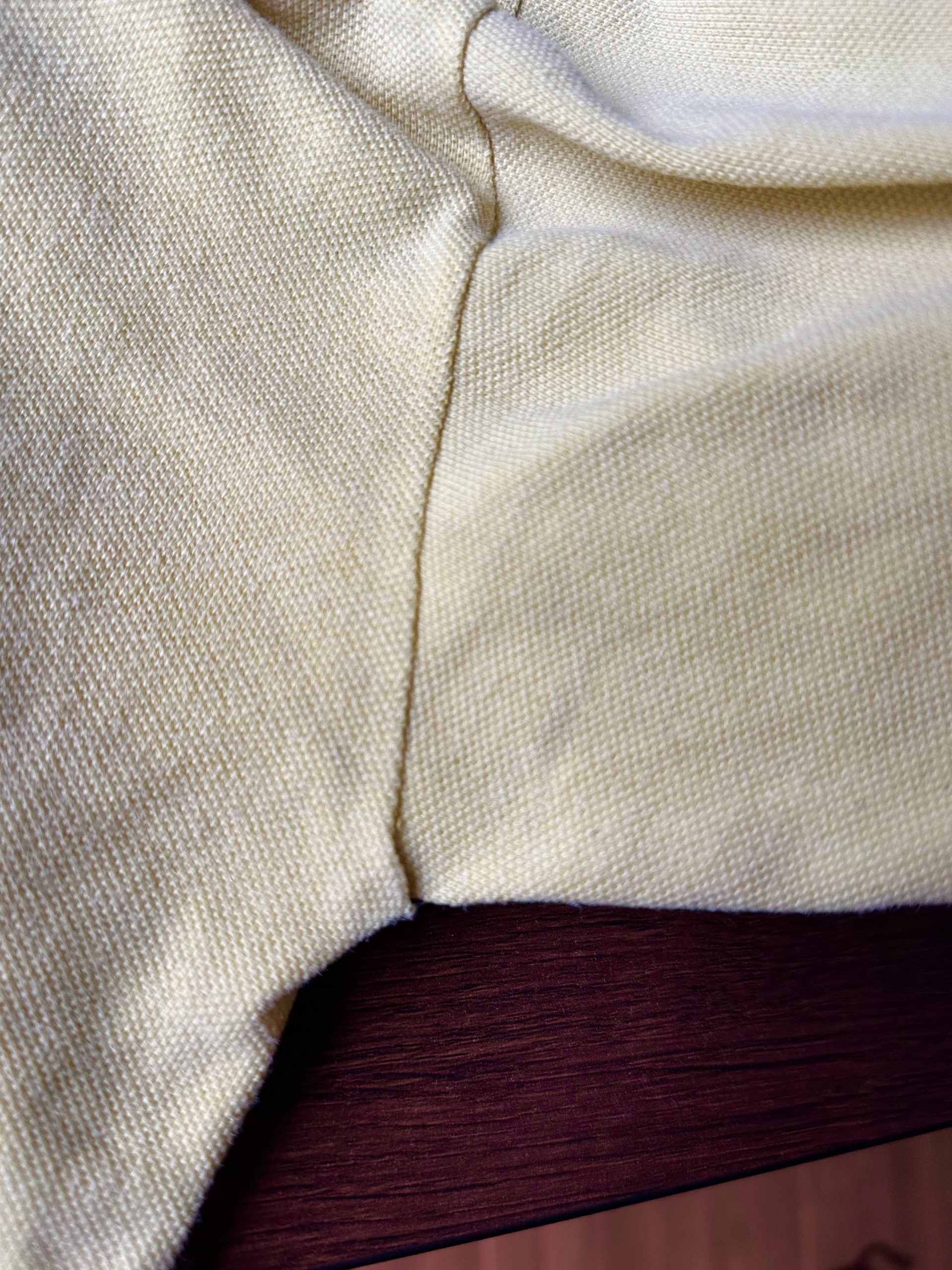 見頃と脇下に若干の汚れあり。脇にわずかに補正箇所あり。
