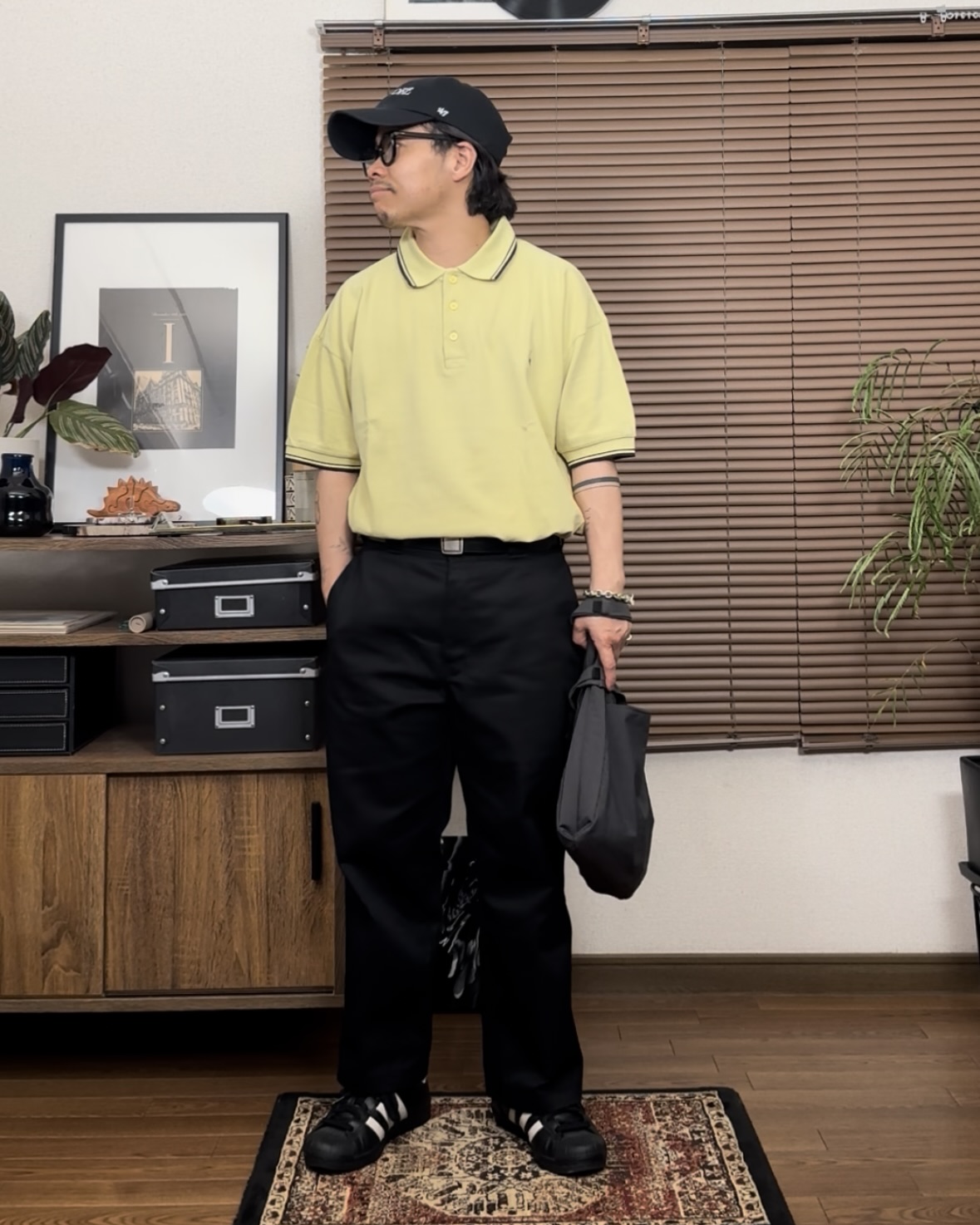リブのブラックが引き立ち、コーディネートを引き締めてくれます。