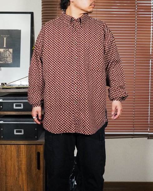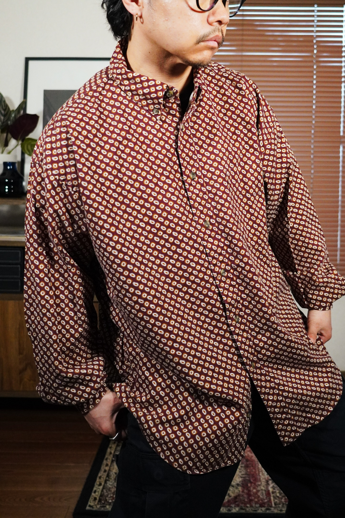 ペイズリー柄が目を惹くブラウンベース柄シャツ。