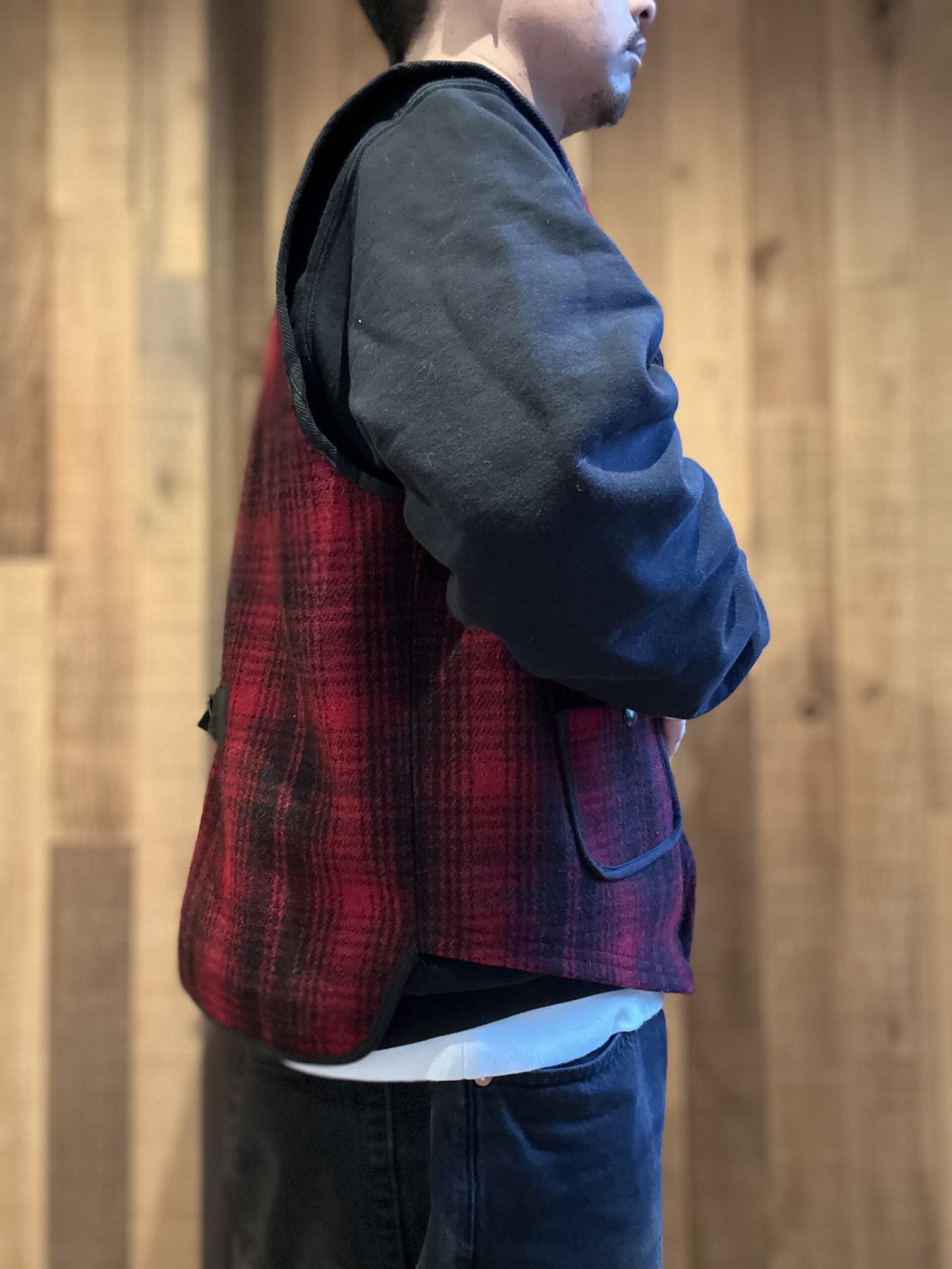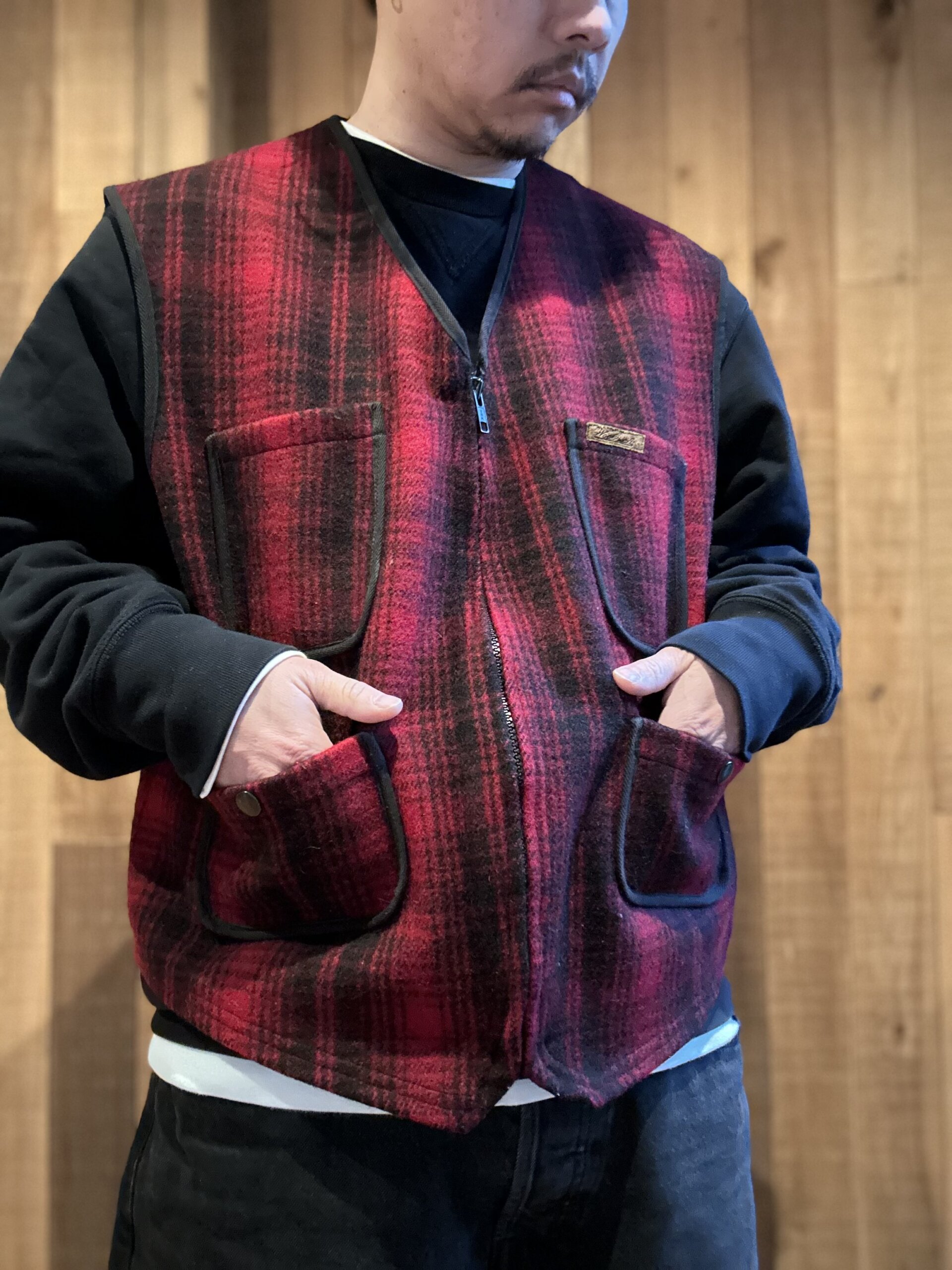 オンブレチェック柄が渋さと可愛さも兼ね備えているwoolrichベスト。