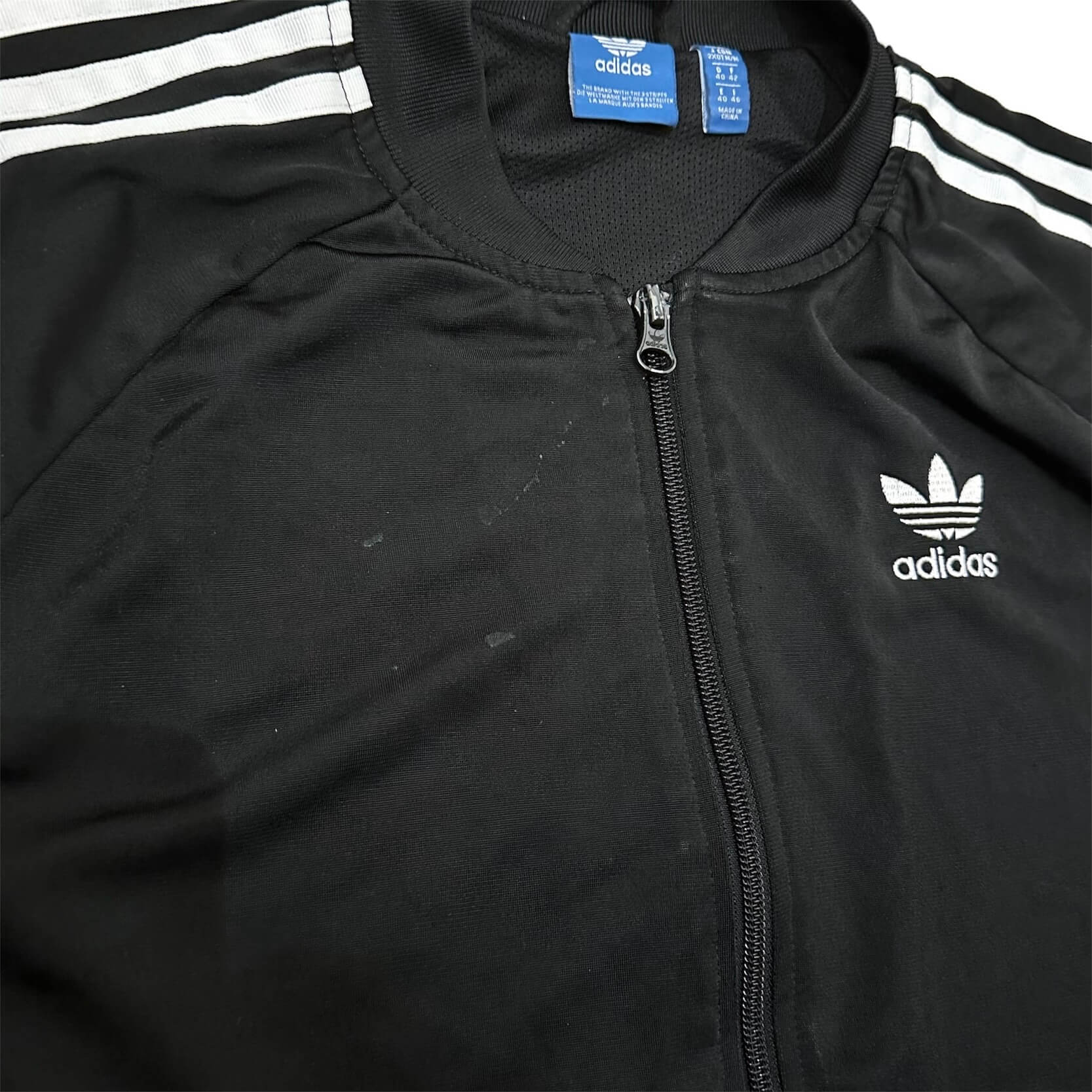 スポーツとストリートファッションの融合を象徴する、adidasのクラシックなトラックジャケット。