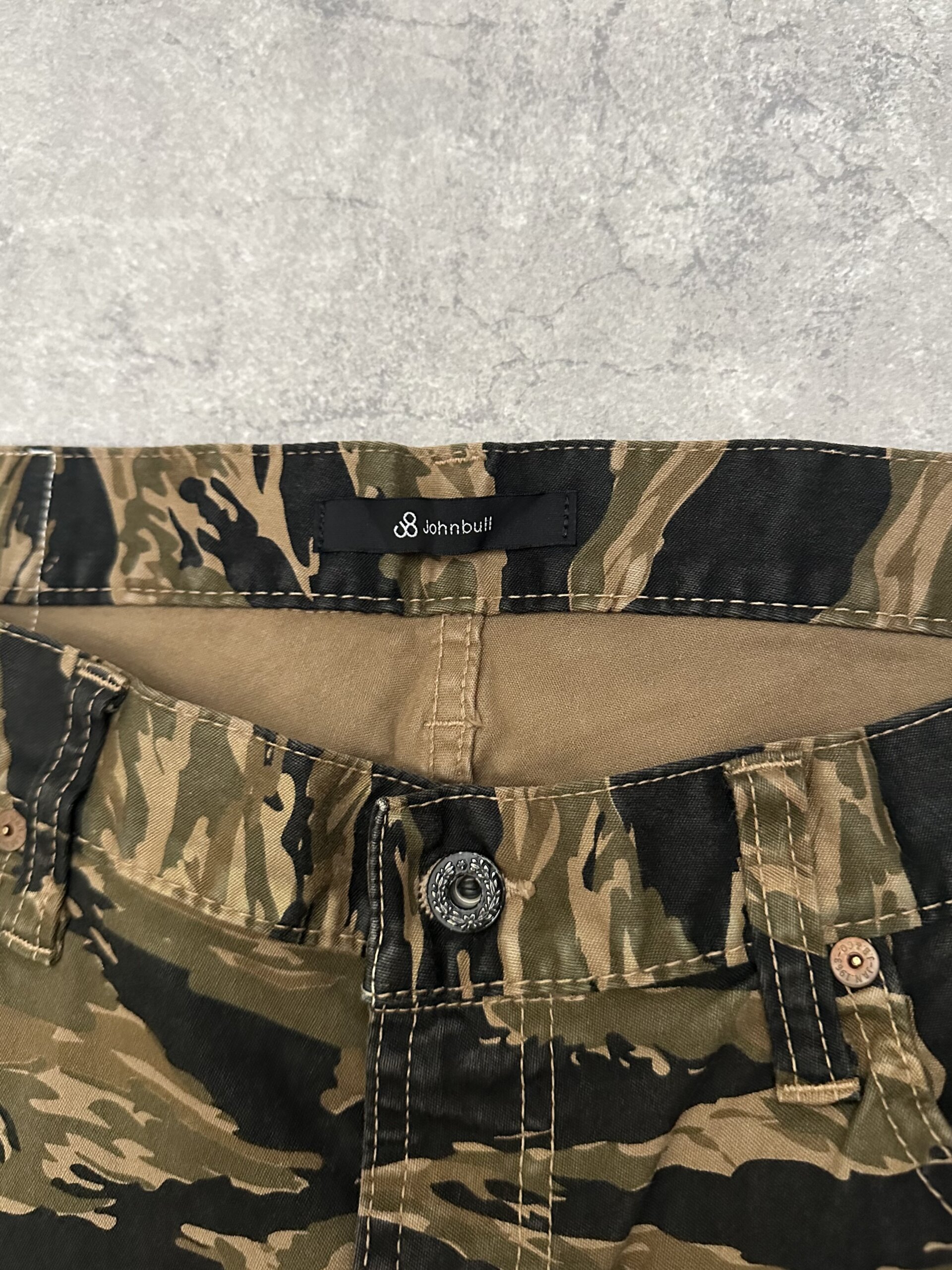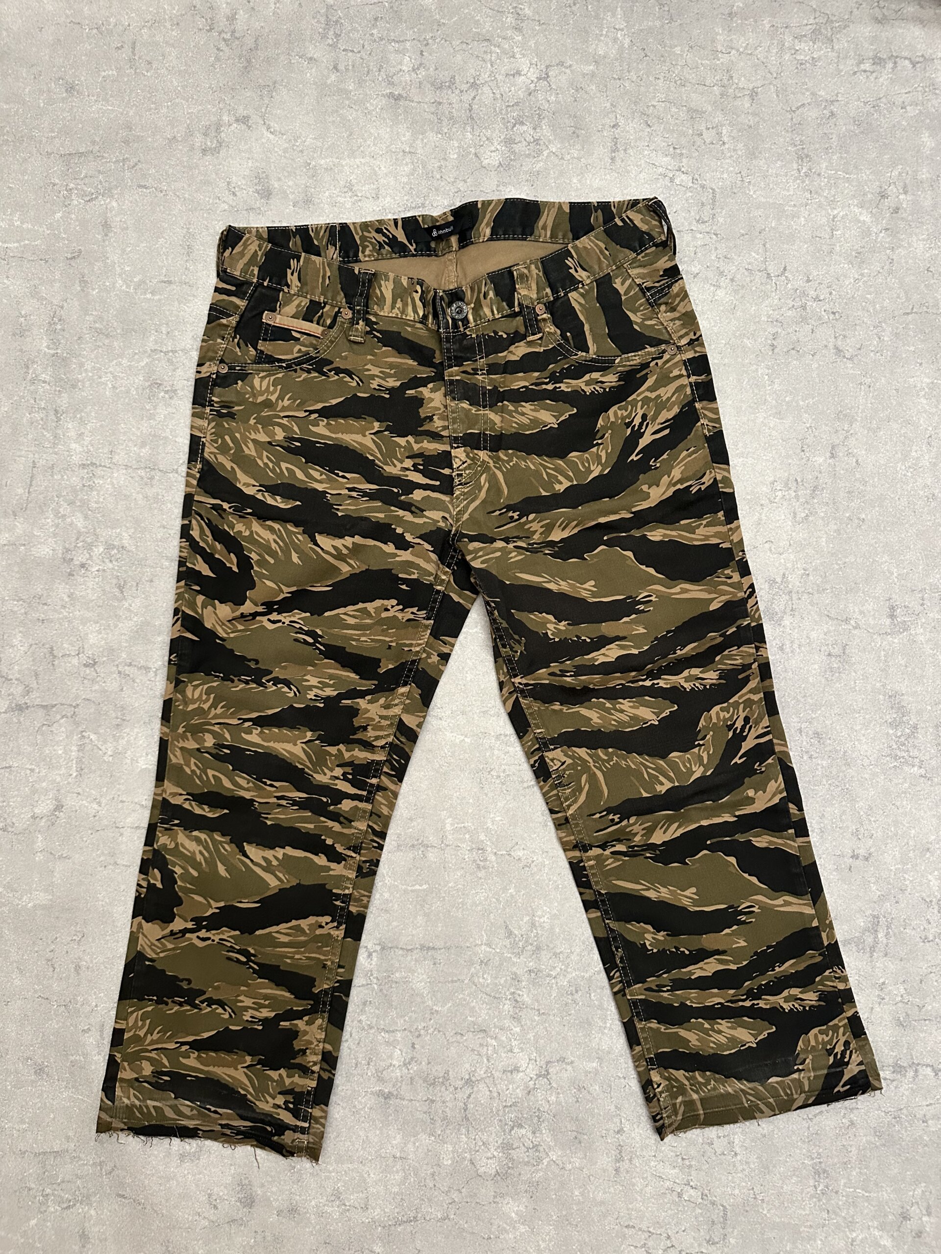 日本の岡山デニムブランド、ジョンブルのタイガーカモバンツ。