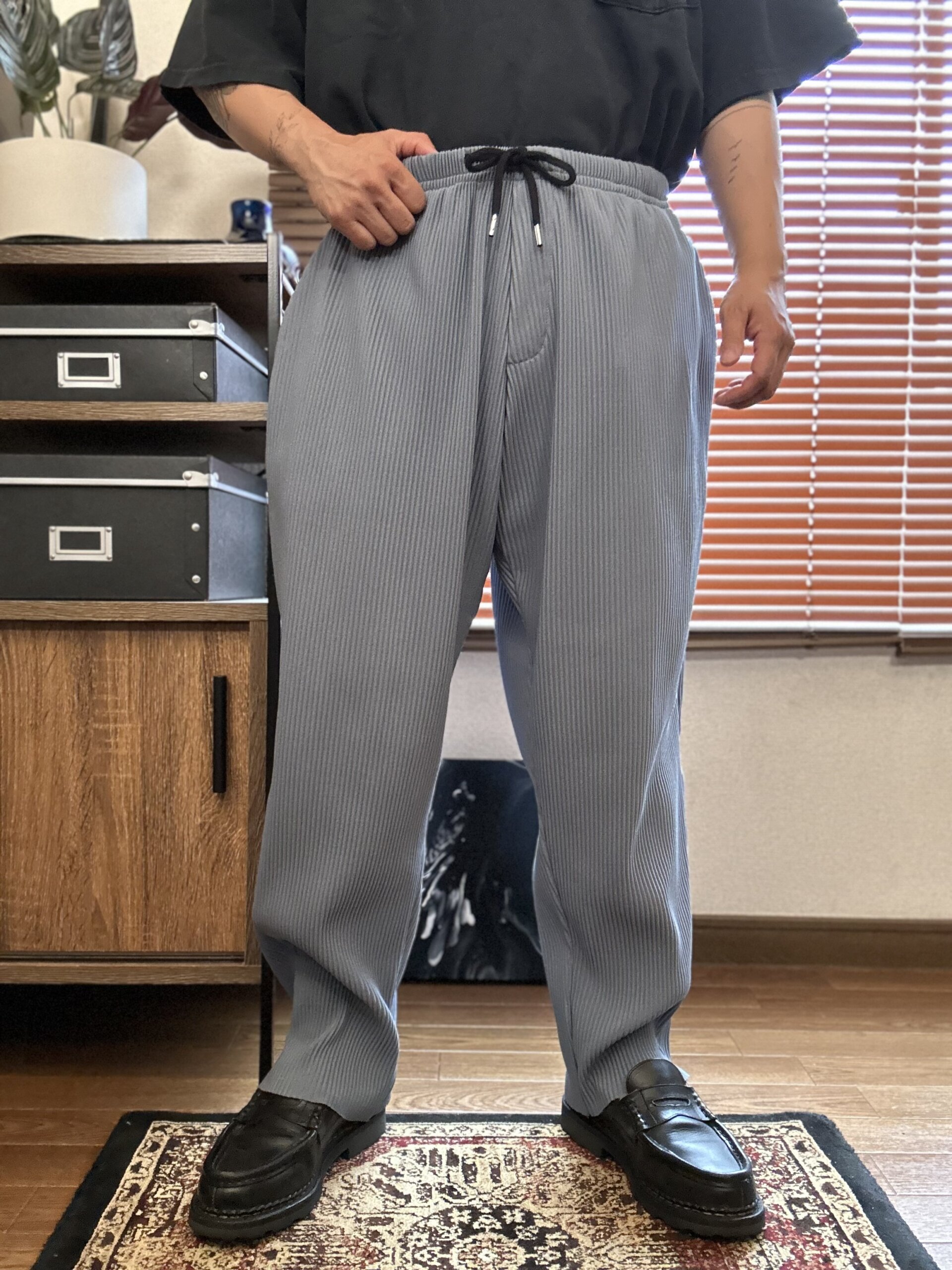 リラックスパンツですがプリーツがあるので綺麗めにも合わせれます。