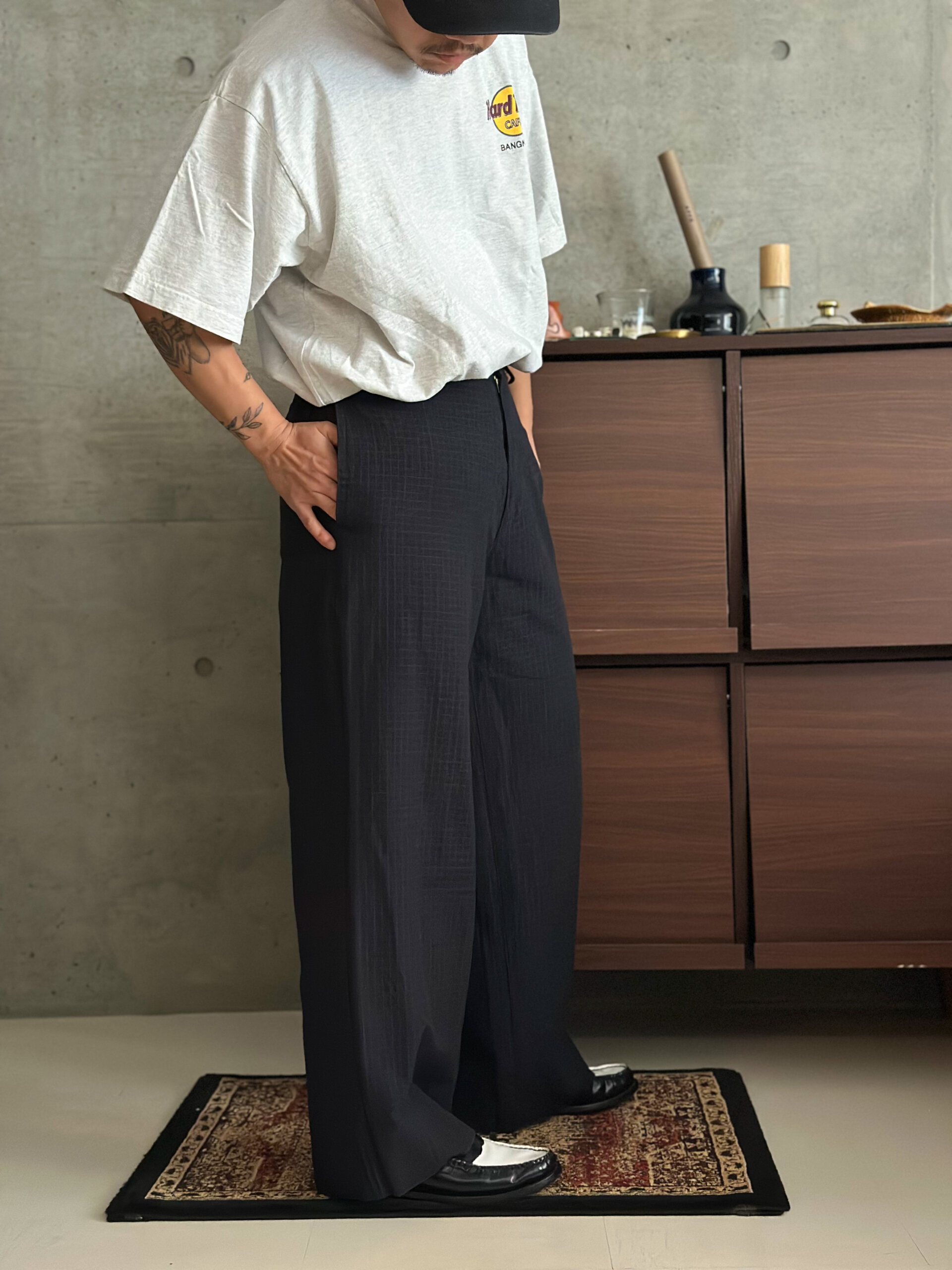 シルエットはワイドストレート。
