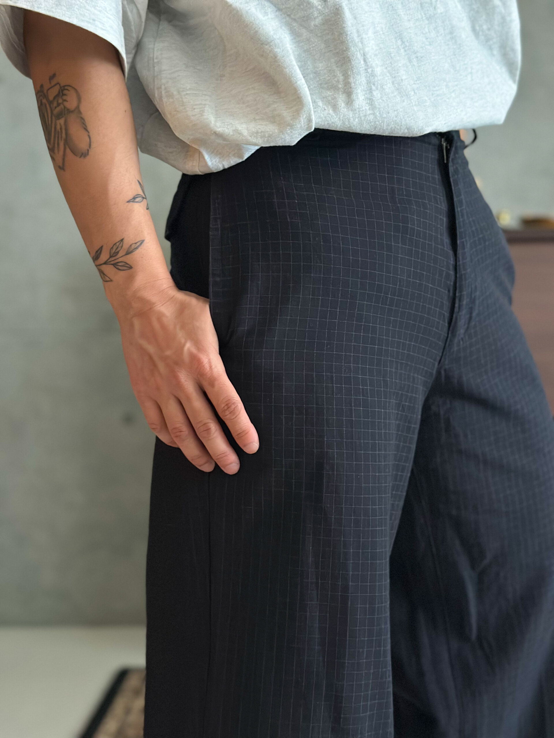 細かいチェック柄がさり気なく大人雰囲気のサンローラン90年代パンツ。