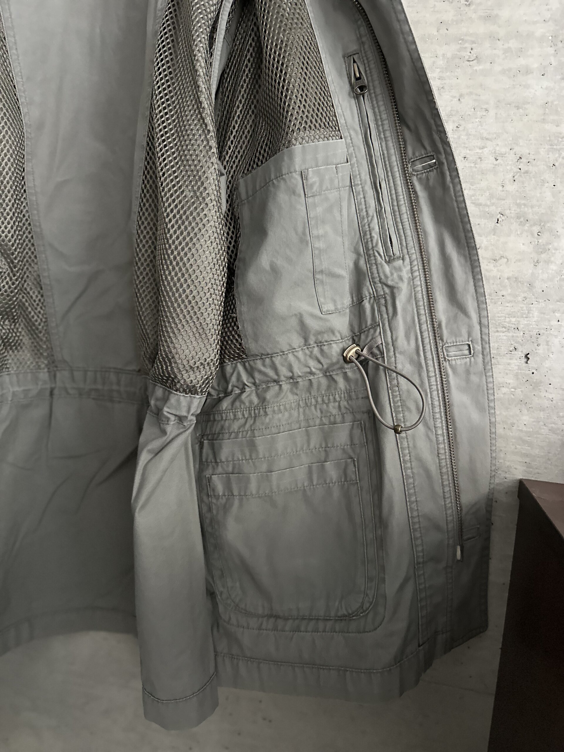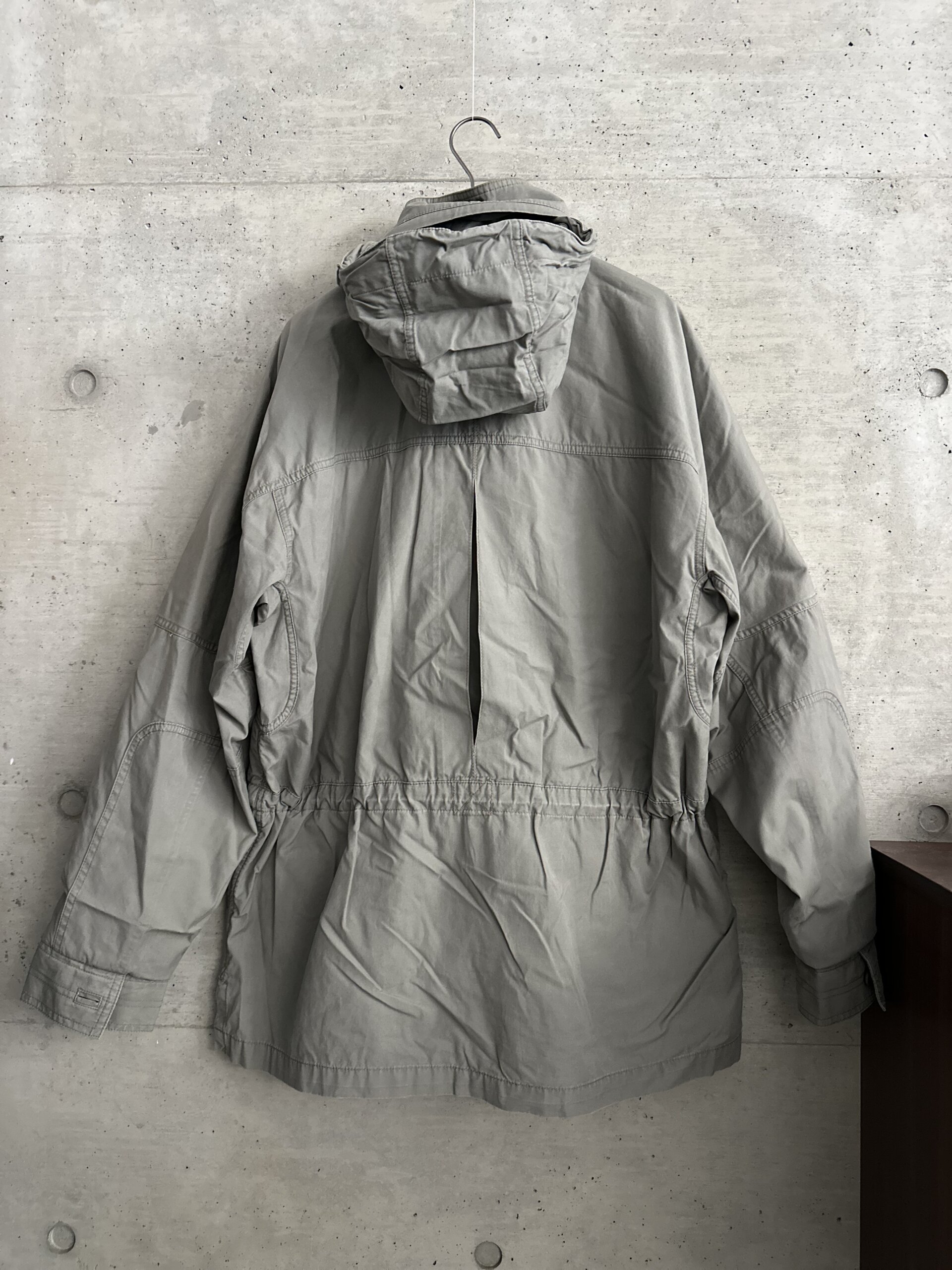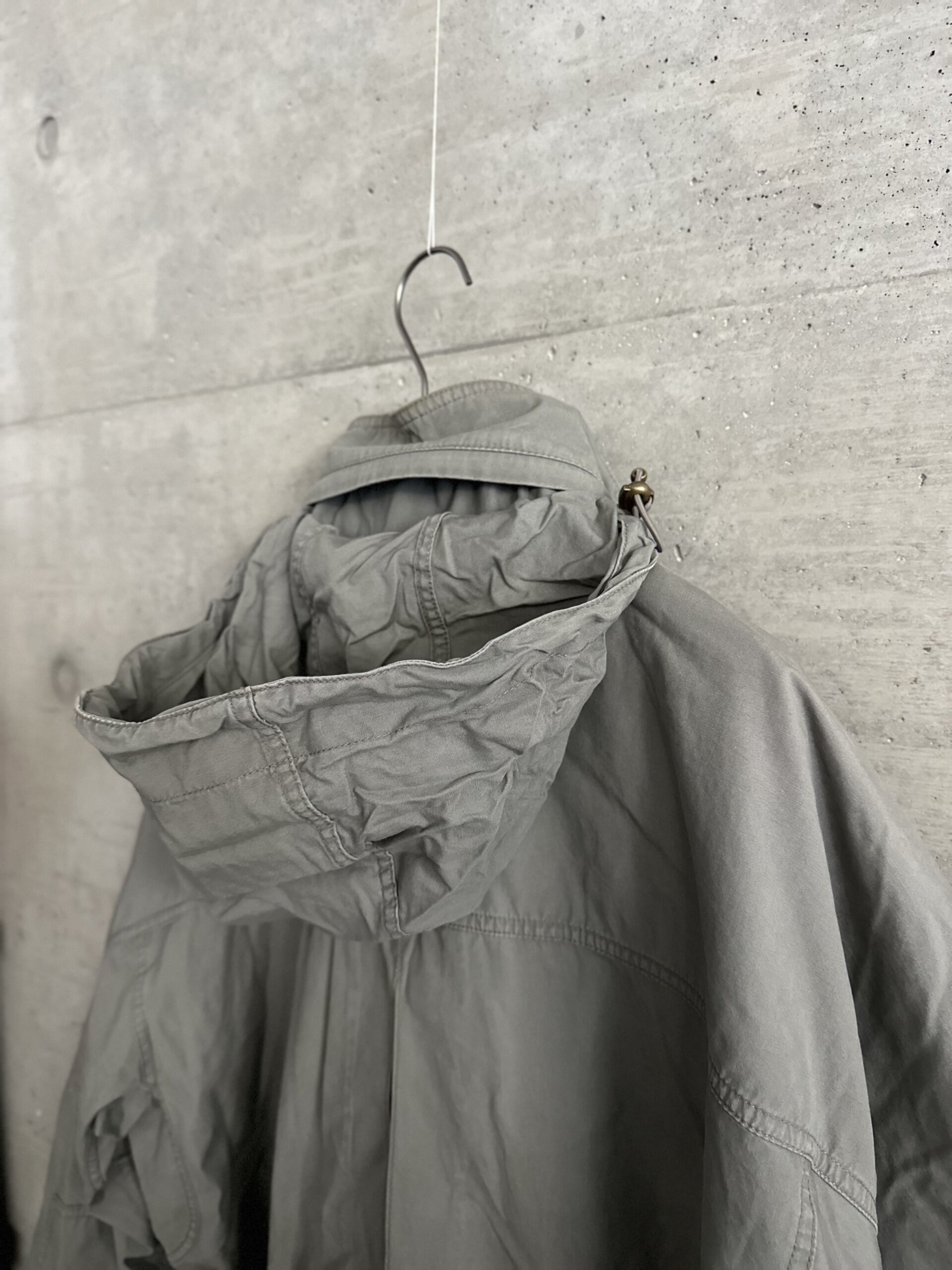ハイネックの首周りにはジップを開けるとフードが出てくるのもポイント。