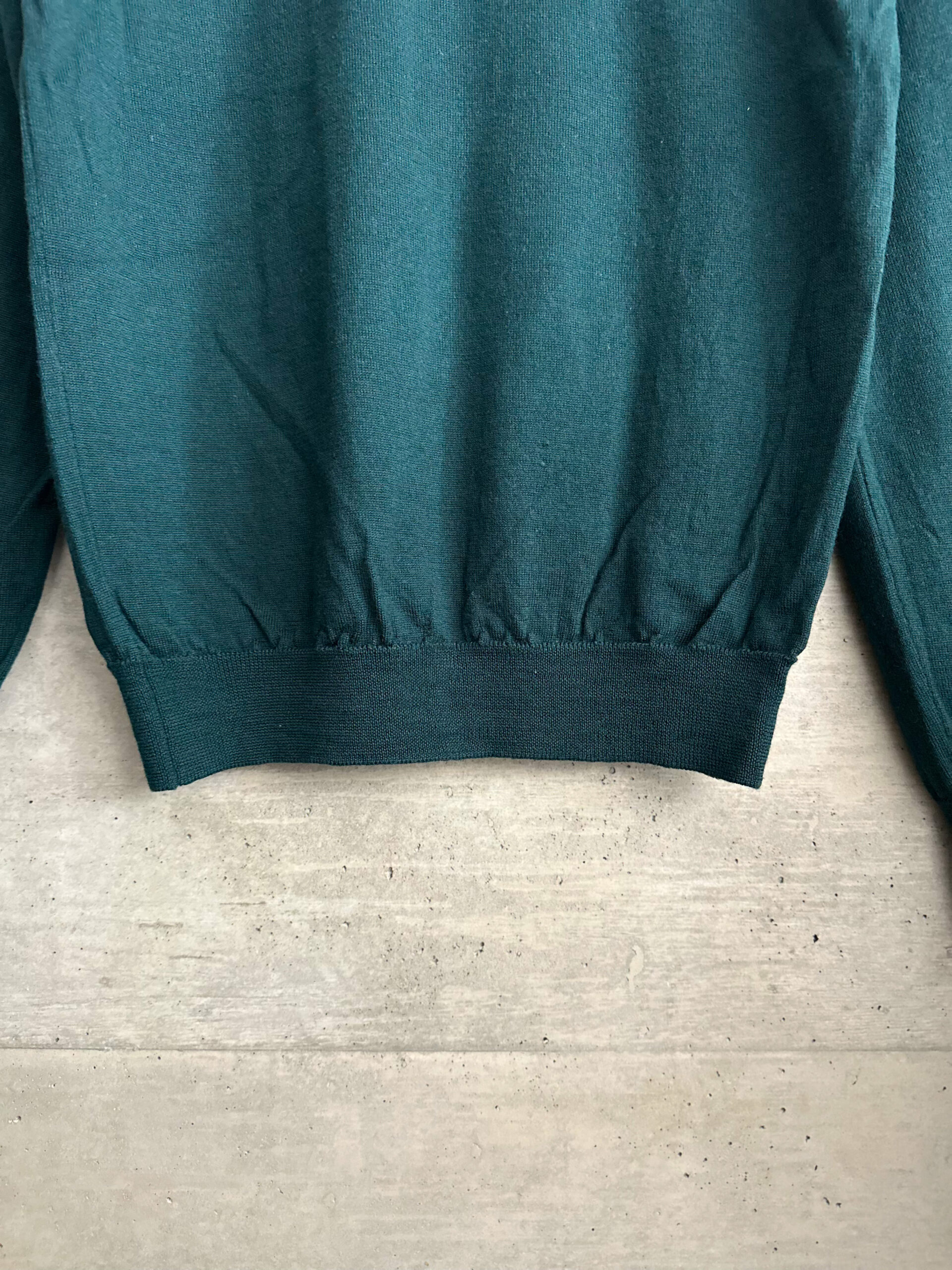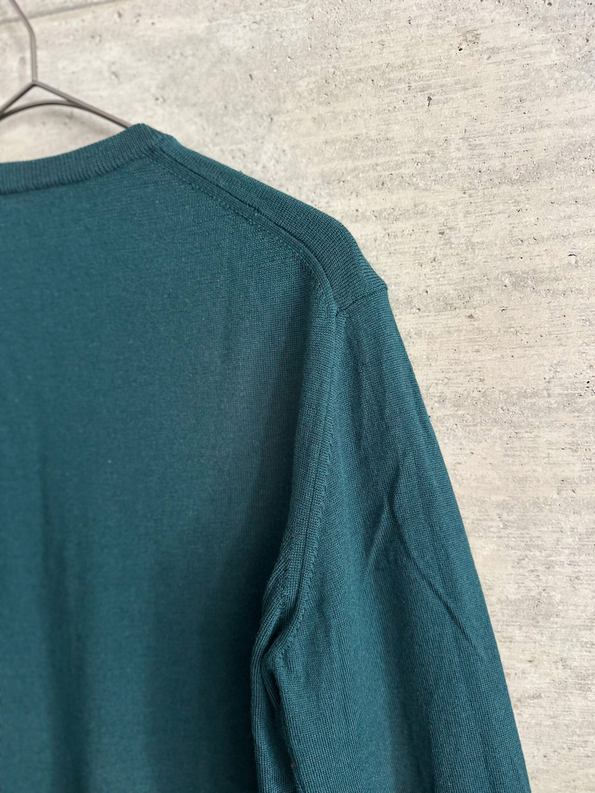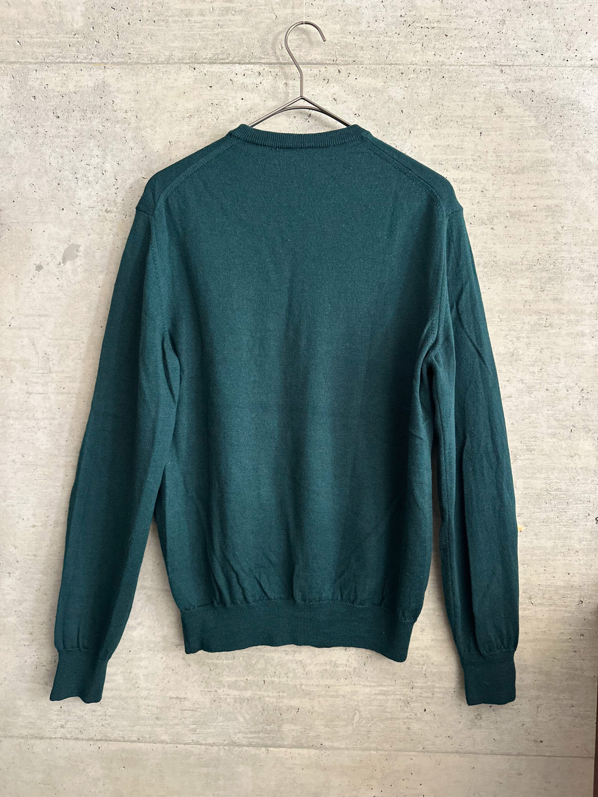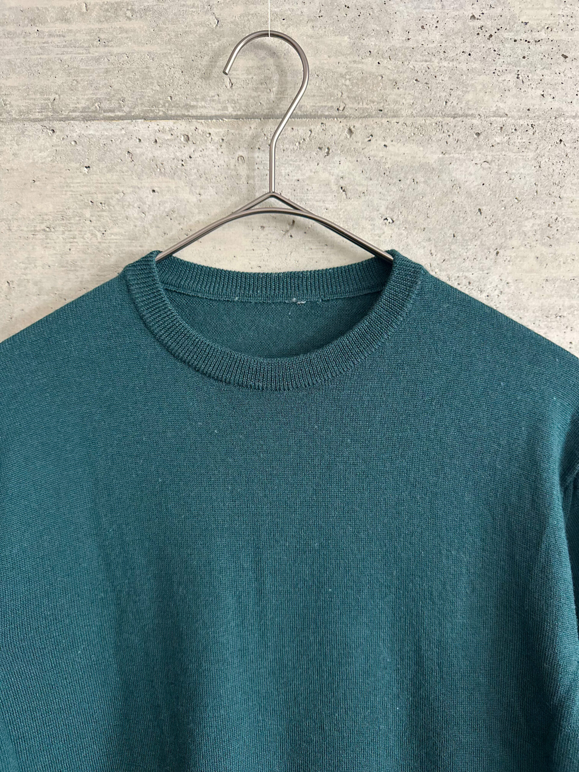 深みのあるグリーンが特徴的なクルーネックニット。