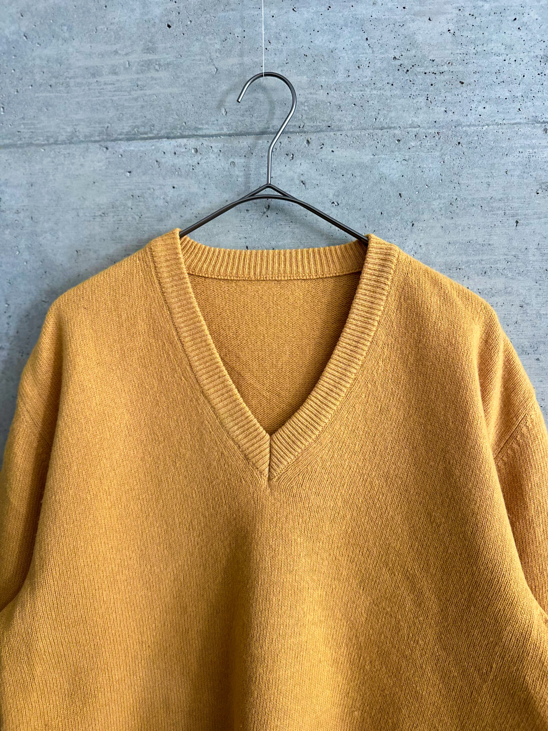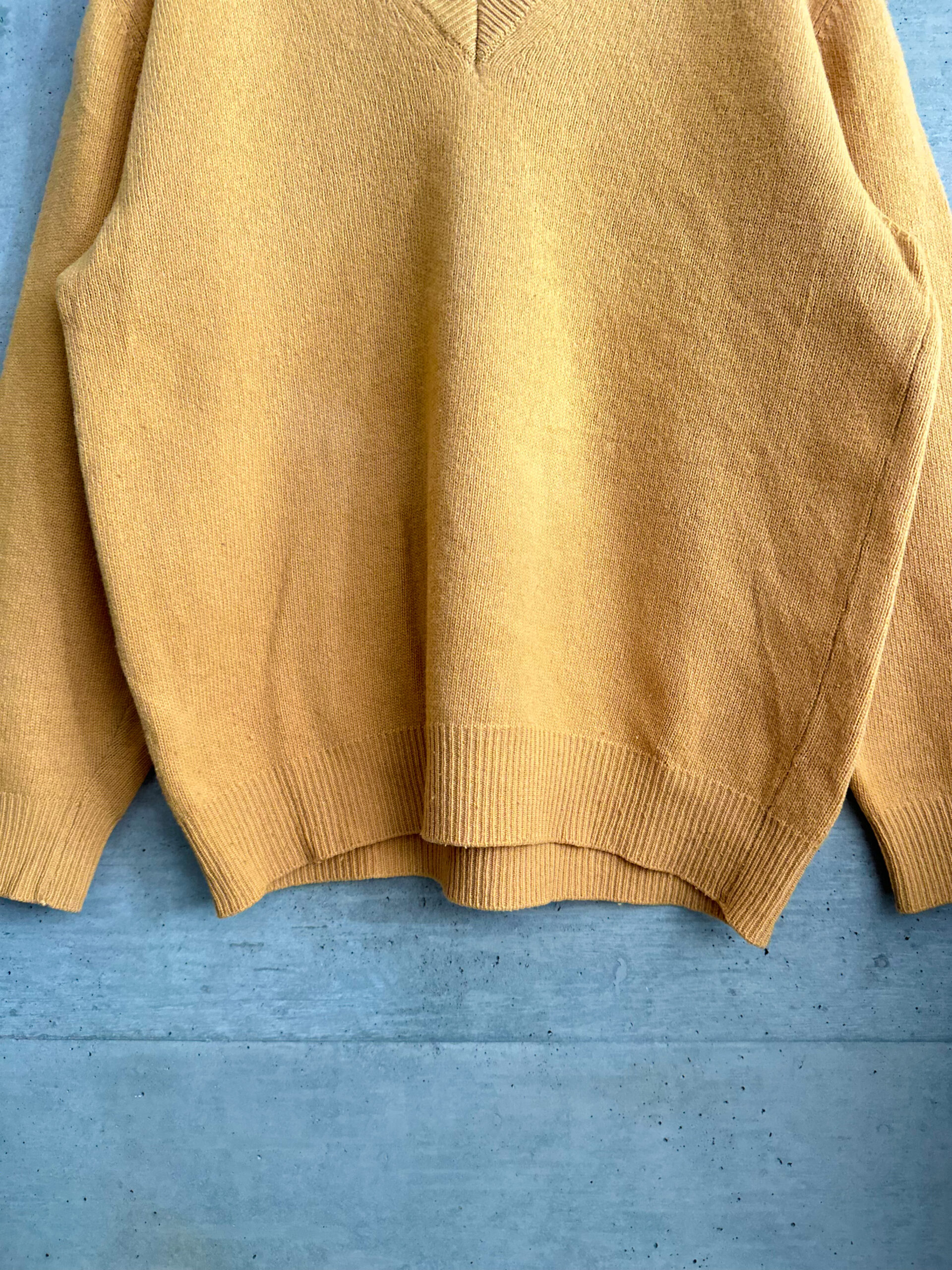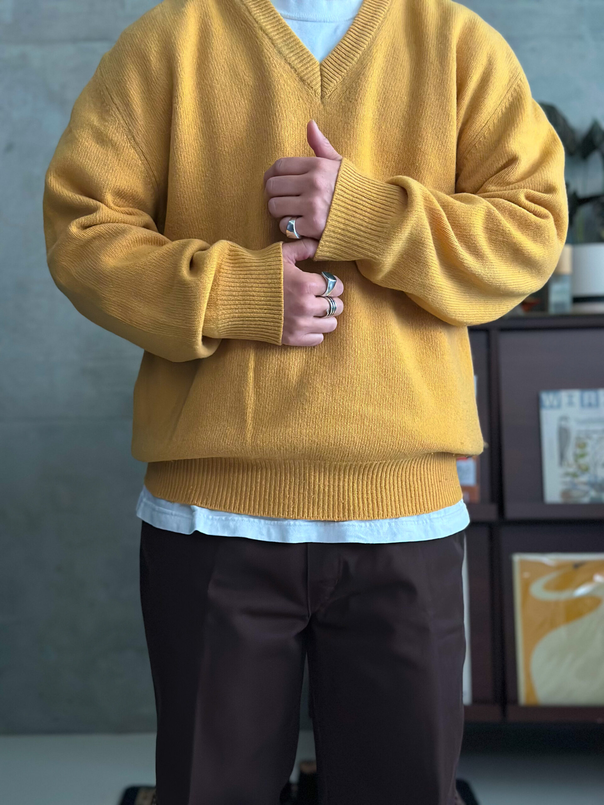 程よい厚みと目を惹く黄色が特徴的なVネックニット。