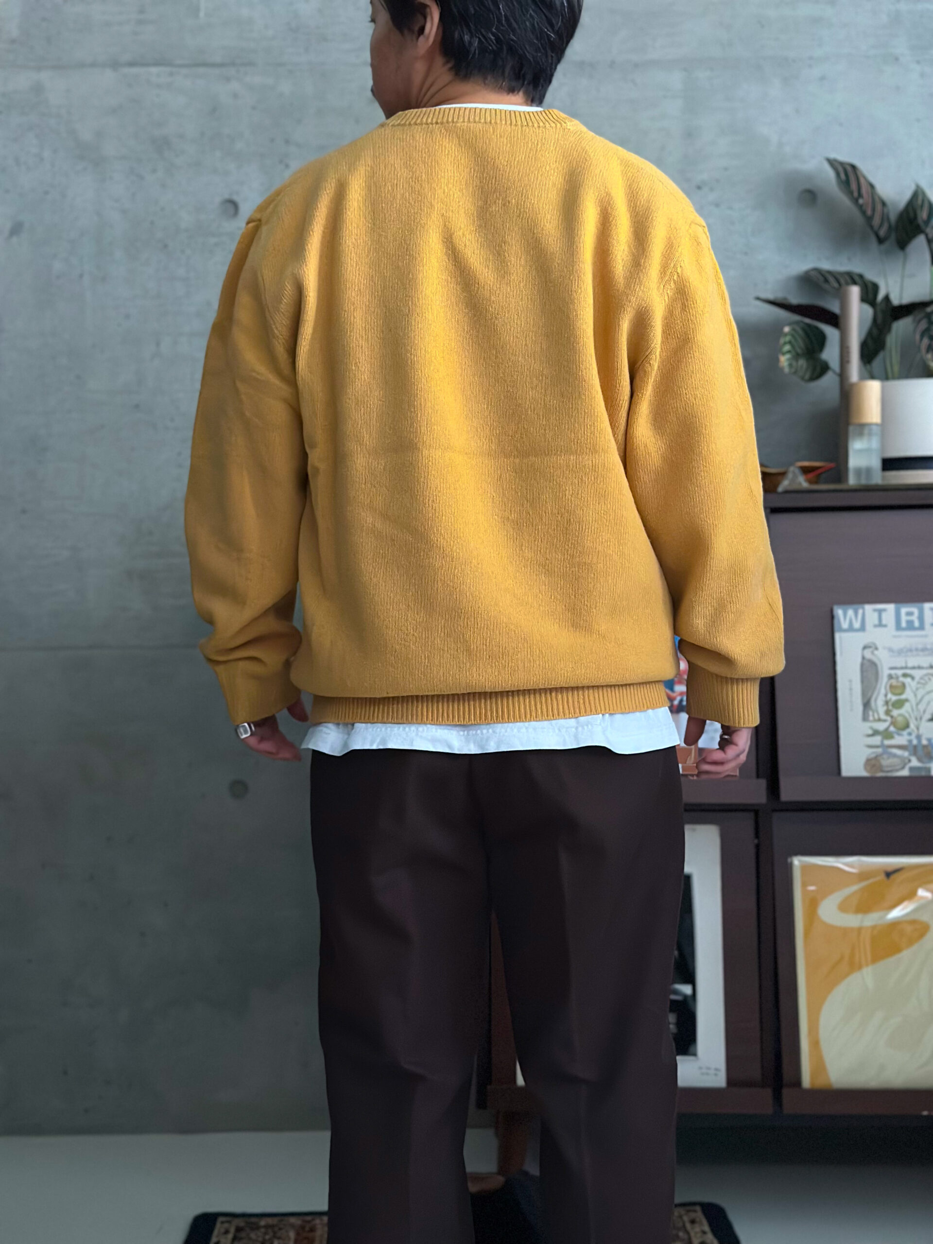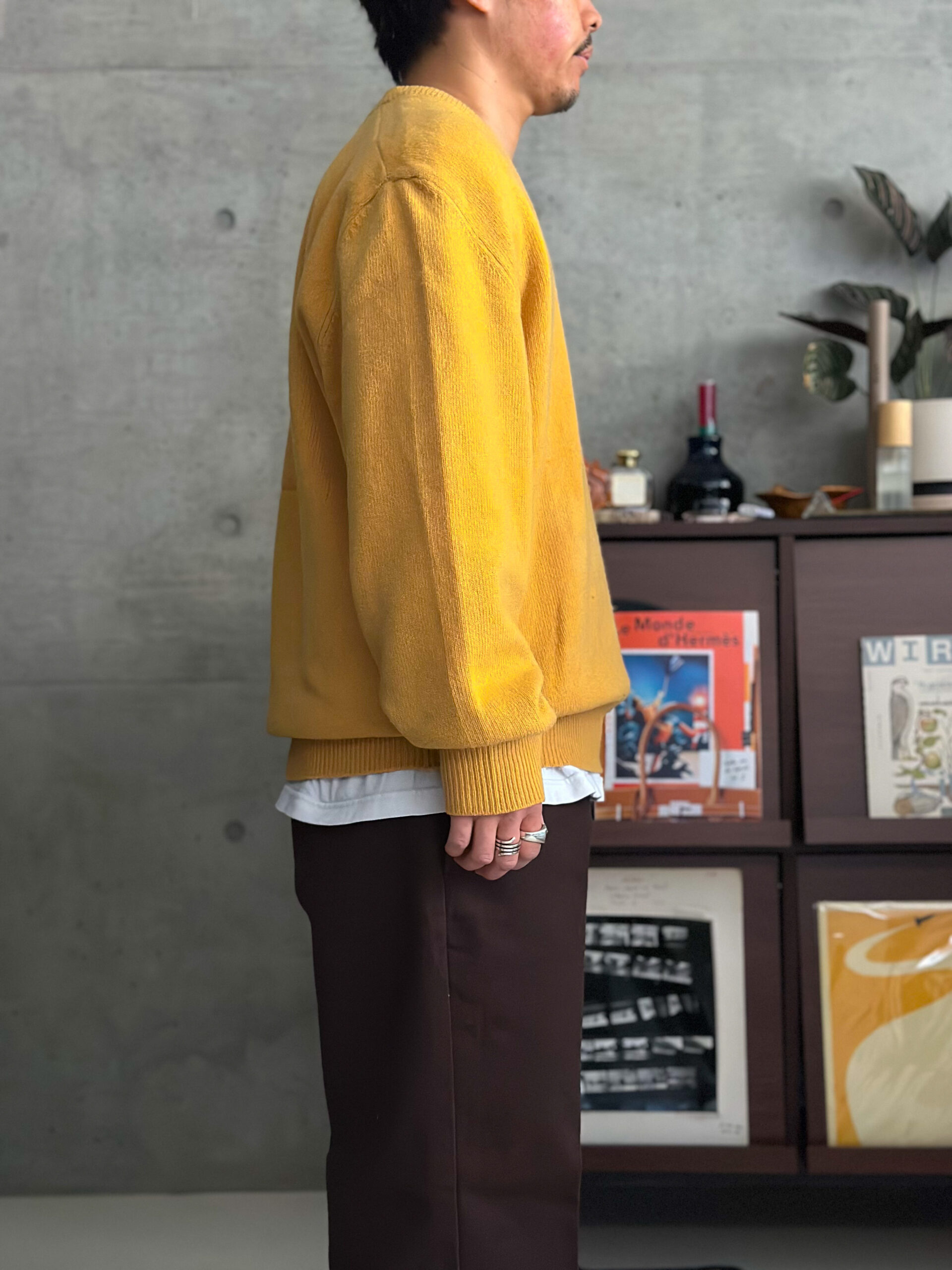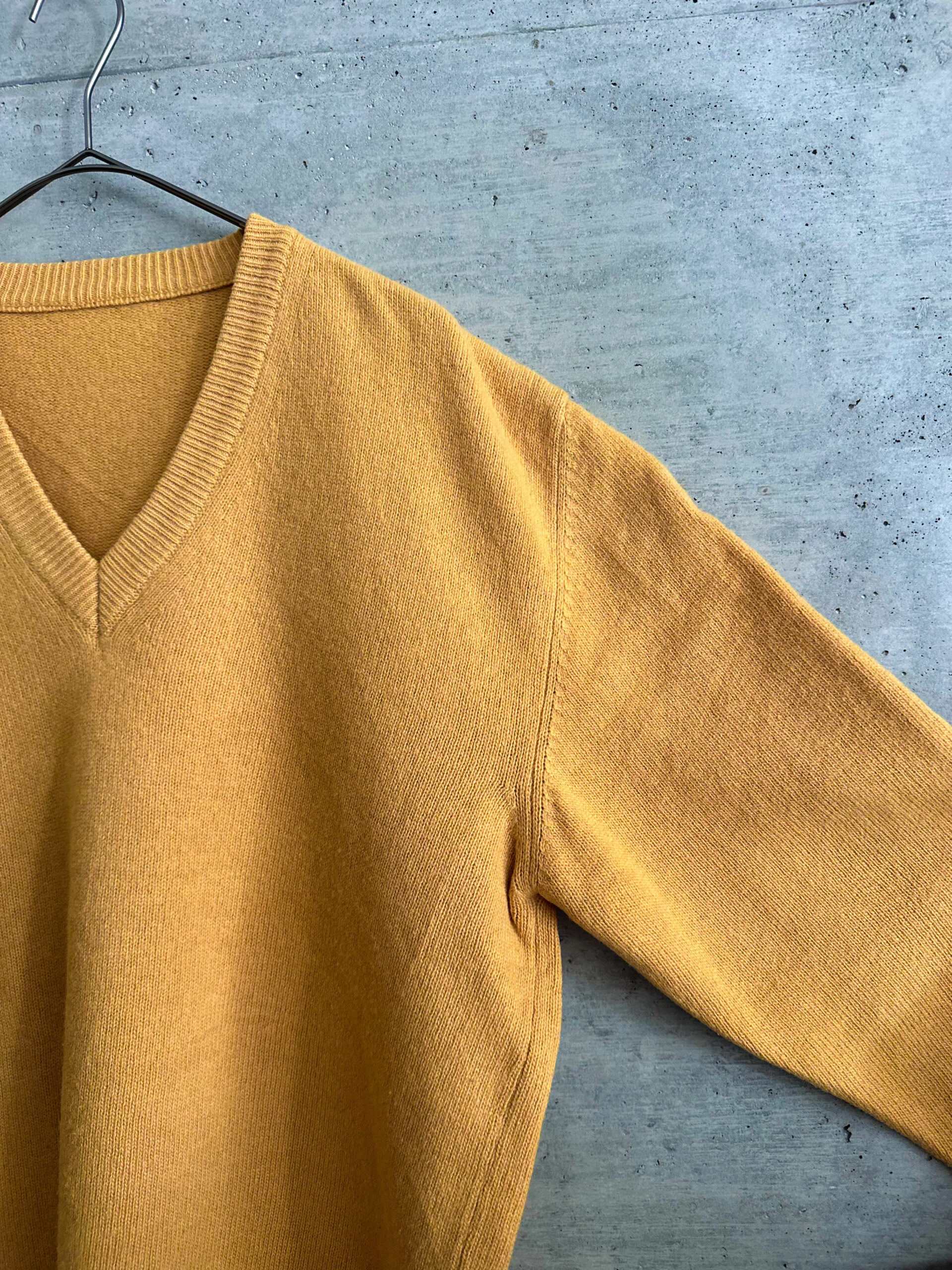 程よい厚みと目を惹く黄色が特徴的なVネックニット。